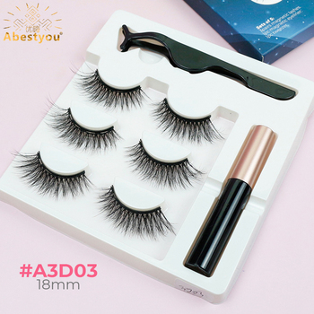 Abestyou Wholesale Handmade Natural 3D Magnetic Lashes Set Invisible Eyeliner Band and False Eyelashes