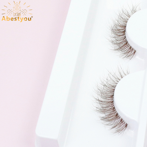 Sinveye מעורב ריסים קצרים מלאכותיים סגנונות מלא רצועת עור שקוף שקוף חום רכה עיניים חתול עיניים קטן כנפיים טבעי