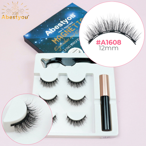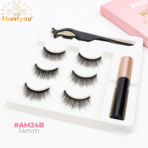 Abestyou kullanımlık manyetik Lashes tutkal içermeyen mıknatıs Eyeliner takım doğal 3D tarzı ile vizon ipek kürk özel ambalaj içeren