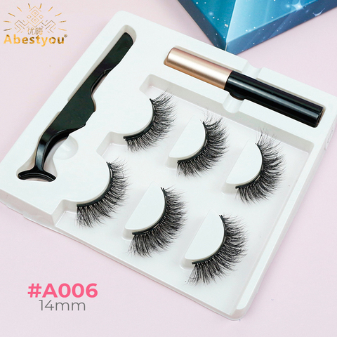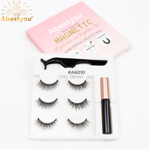 Abestyou doğal 3D tarzı kullanımlık manyetik kirpikler Glue sız mıknatıs Eyeliner takım vizon ipek kürk özel insan saçı içeren